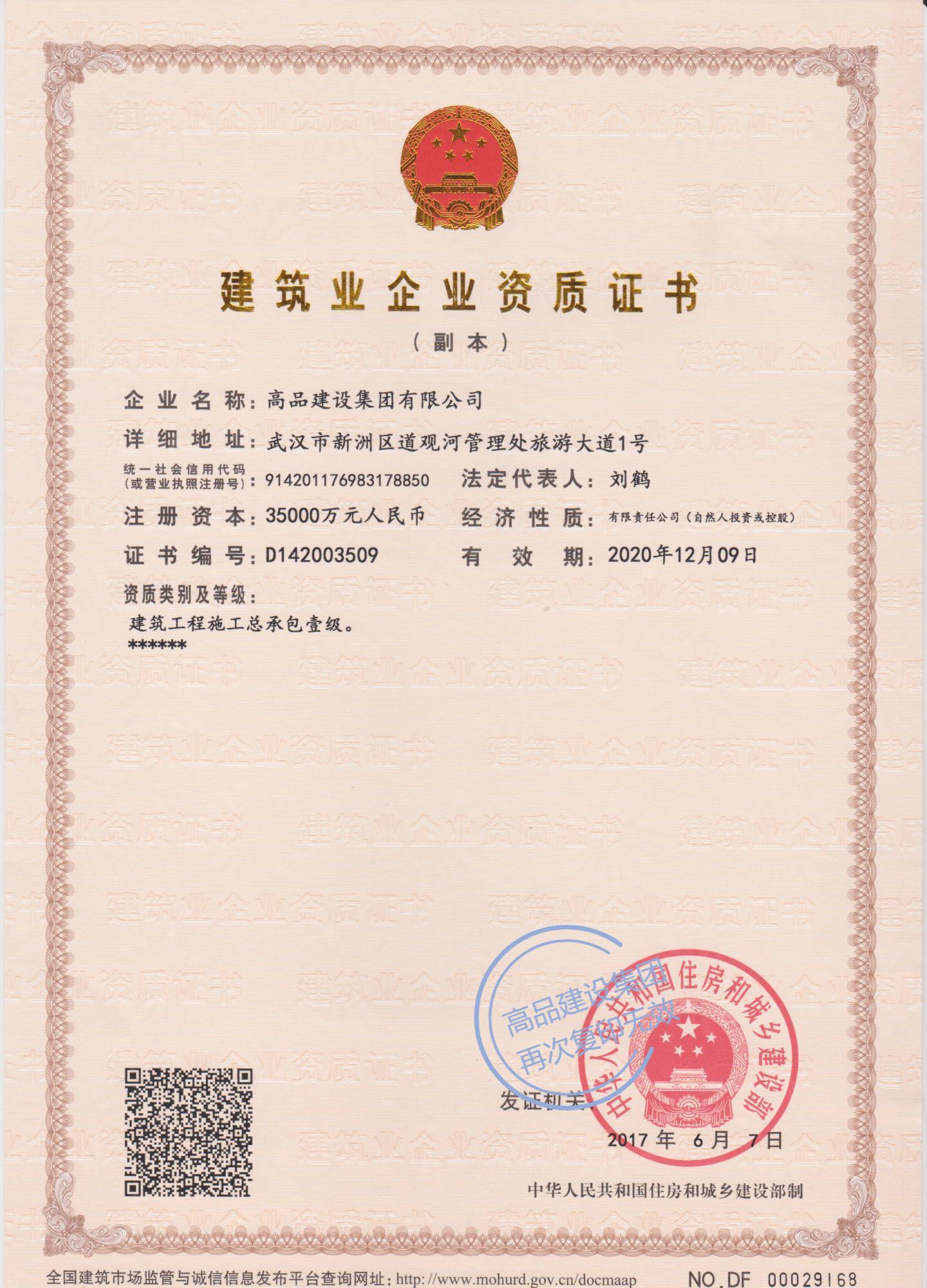 建筑業(yè)企業(yè)資質(zhì)證書壹級